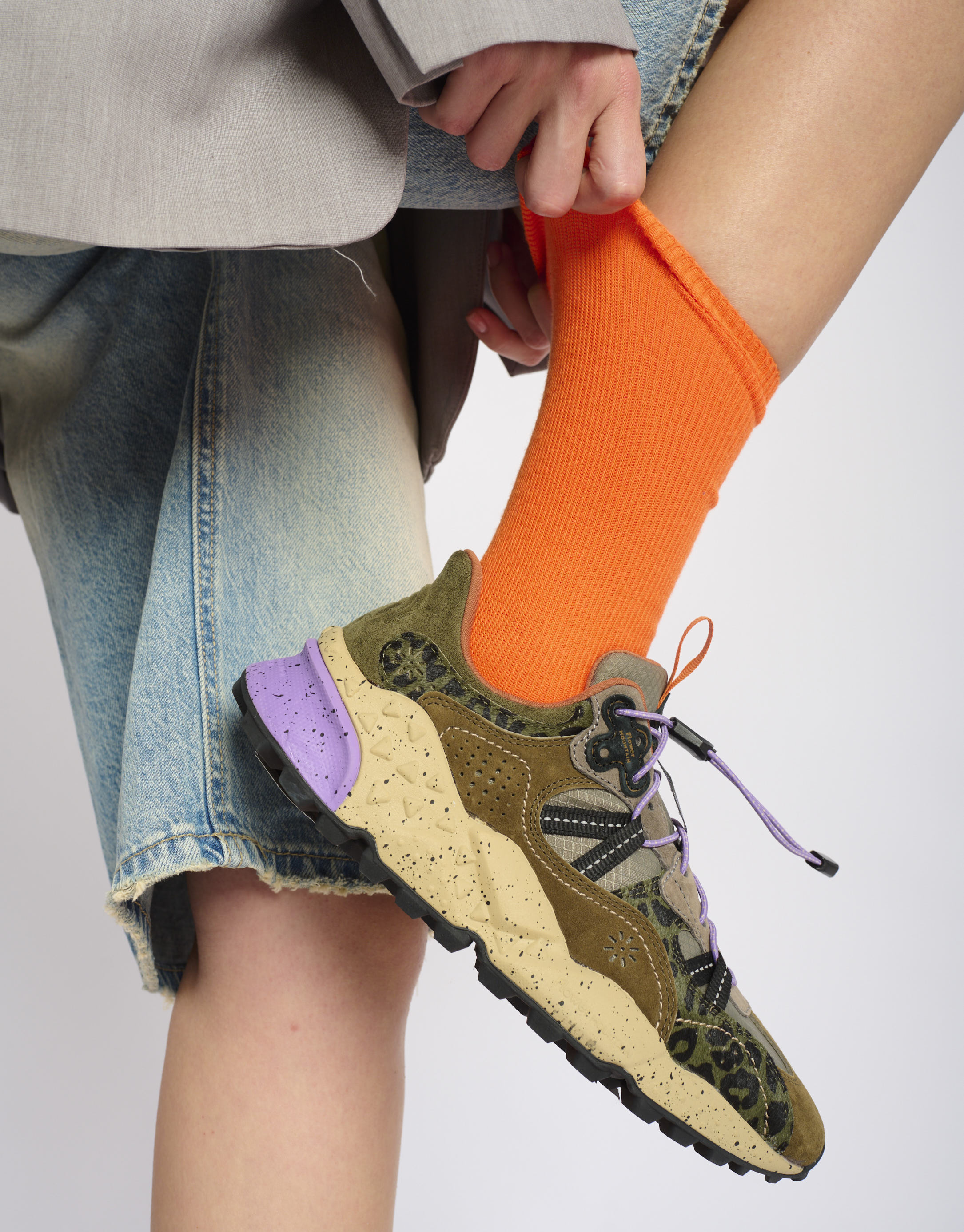 נעלי סניקרס גבוהות עשויות אריג עם פרינט. לנעליים רפידה נשלפת וסוליה גמישה.