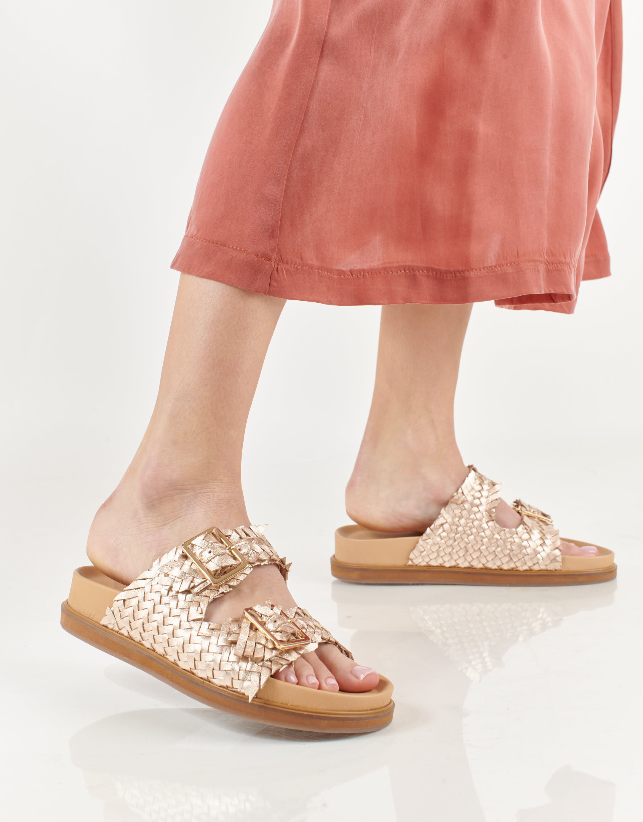 כפכפים שטוחים המיוצרים בעבודת יד, ילוו אותך מהאביב לקיץ ולסתיו. כפכפים מטאליים שהם אס במלתחה שלך, נסי ותגלי.